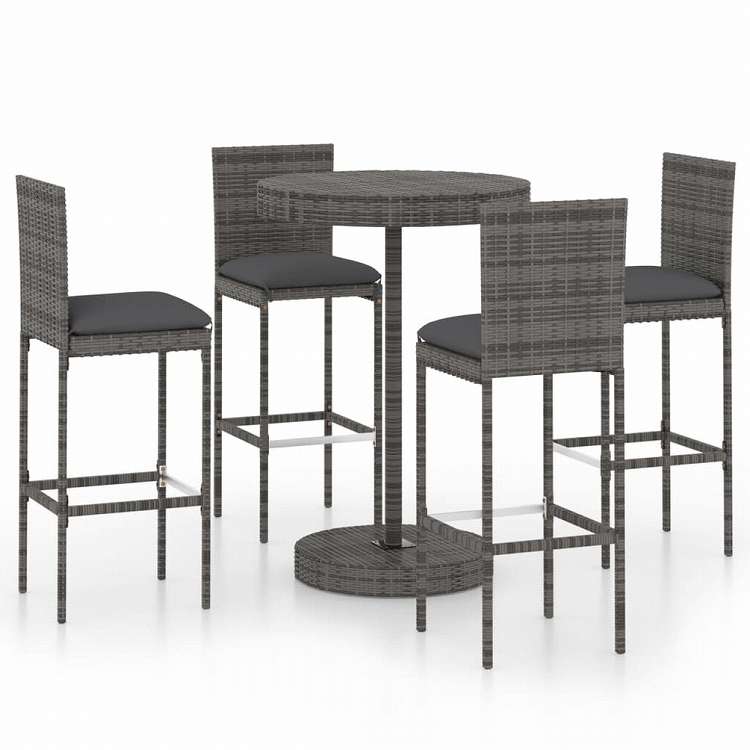 vidaXL ガーデンバー5点セット クッション付 ポリラタン製 グレー家具 アウトドア家具 屋外家具セット(代引不可)