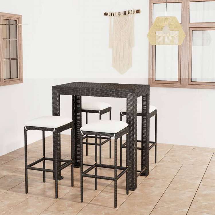 vidaXL ガーデンバー5点セット クッション付き ポリラタン製 ブラック家具 アウトドア家具 屋外家具セット(代引不可)