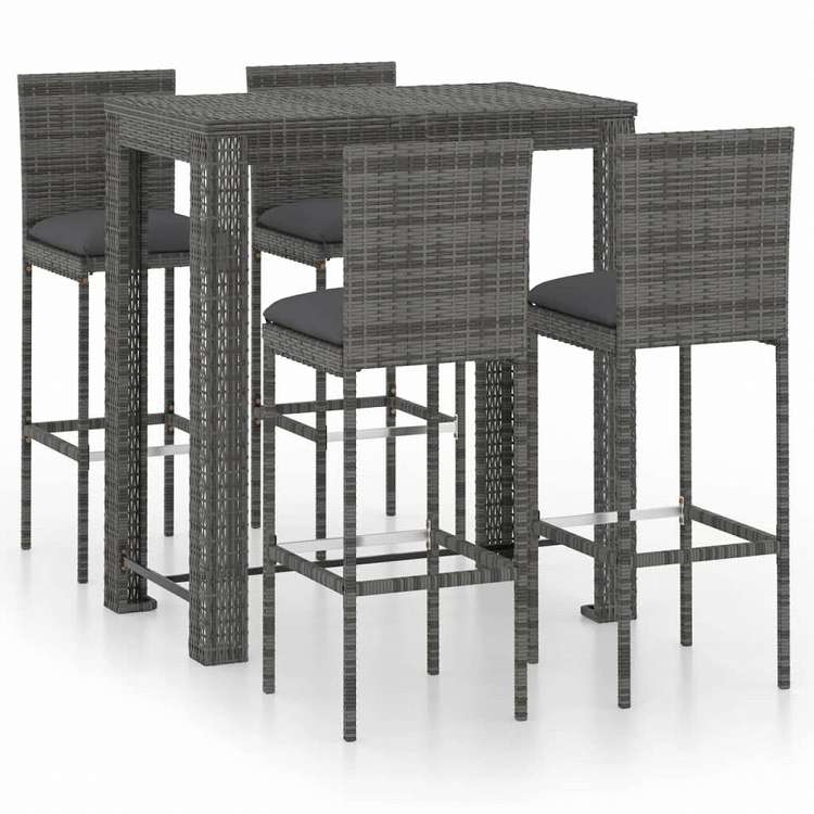 vidaXL アウトドアバーセット 5点 クッション付き ポリラタン グレー家具 アウトドア家具 屋外家具セット(代引不可)