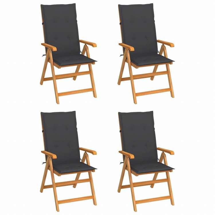 vidaXL ガーデンチェア 4点 アントラシートクッション付き チーク無垢材家具 アウトドア家具 屋外椅子 アウトドアベンチチェア(代引不可)