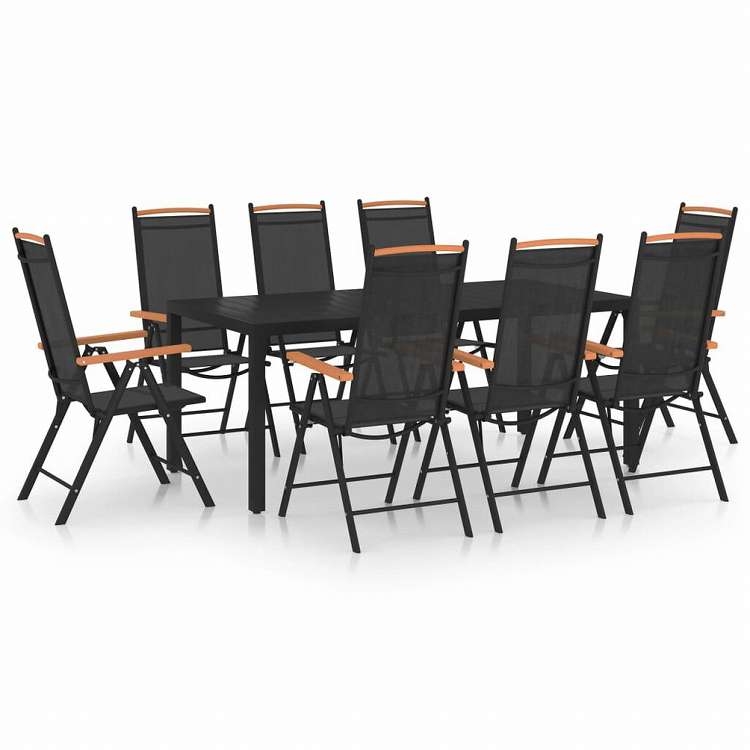 vidaXL ガーデンダイニング9点セット アルミ製 ブラック家具 アウトドア家具 屋外家具セット(代引不可)