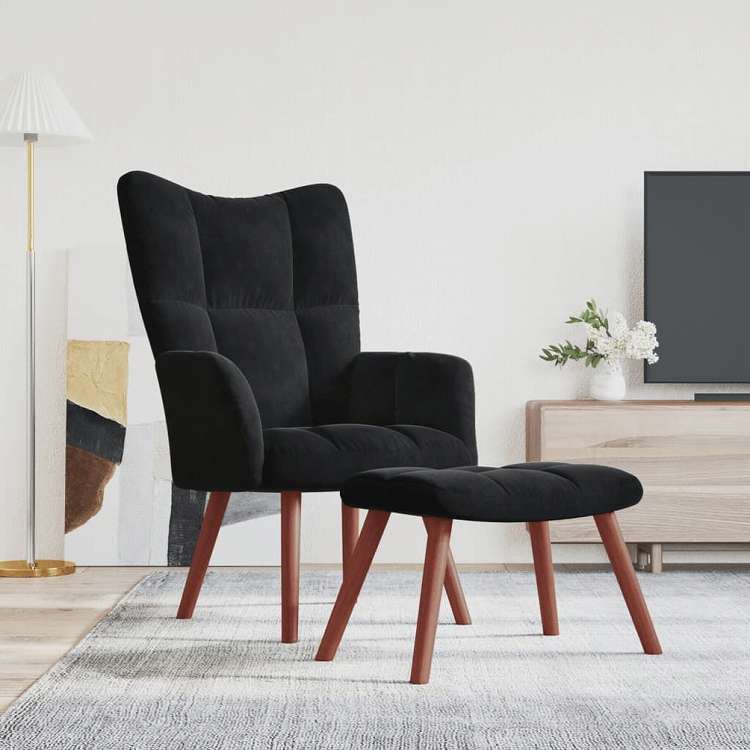 vidaXL リラックスチェア スツール付 ブラック ベルベット家具 チェア アームチェア・リクライニングチェア・スリーピングチェア(代引不可)