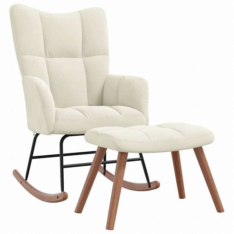 vidaXL ロッキングチェア スツール付 クリームホワイト ベルベット家具 チェア ロッキングチェア(代引不可)