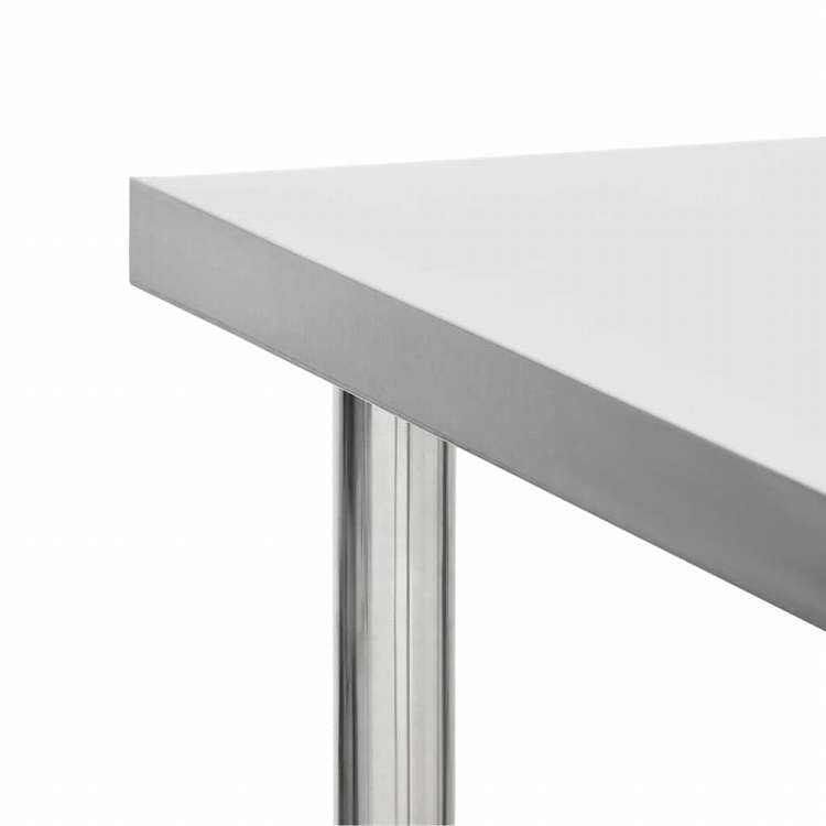■このワークテーブルは食事の準備やキッチン、レストラン、学校、その他商業施設での調理作業に最適です。 美食家にぴったりのワークテーブル。耐久性の高いステンレススチールで出来ており、長年使用することができます。滑らかな表面は耐腐食性を備えており、清掃が簡単です。下部のボードは追加の収納スペースとして活躍します。このワークベンチは4つの可動ホイール付きで、思い通りの方向に動かすことができます。また2つの車輪にはテーブル位置を固定するためのブレーキがついています。