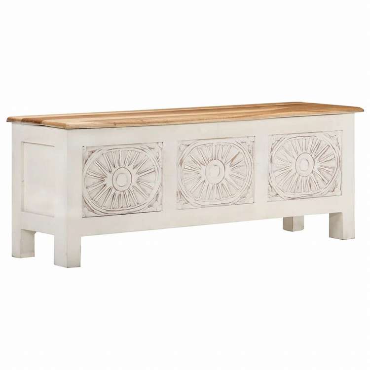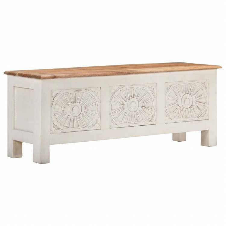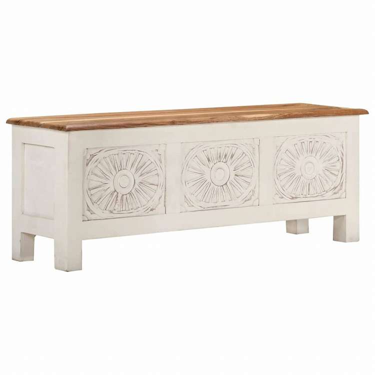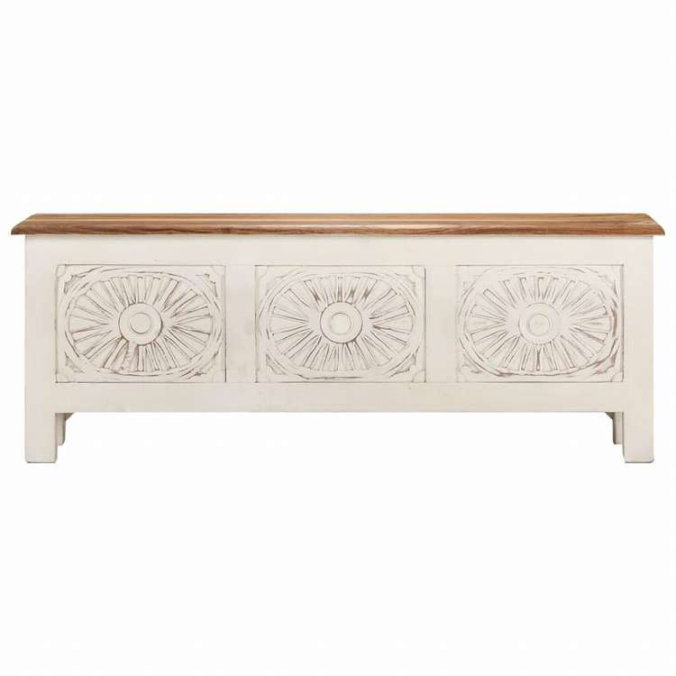 ■美しい彫刻が施された木製収納ボックス。時代を問わずインテリアに彩りを添えます。 アカシア無垢材にホワイト仕上げを施し、美しい外観と明るい色合いを実現したテレビキャビネットです。職人の技と優美な木目によって、どの家具も特別な存在感を放ち、外観が一点一点微妙に異なります。さらに、研磨、塗装、ラッカー塗装など、すべての工程が完璧な職人技で細心の注意を払って施されている他、ボックス前面の手彫りの優美な模様が、キャビネットの美しさをより一層引き立てています。このサイドボードにはキャビネットが1点付いており、マルチメディア機器や本、さまざまなアイテムをすっきりと整理して収納できる十分なスペースを確保しています。 重要事項:自然素材を使用しているため、色と木目は商品毎に異なり、一点一点が個性的です。ランダム発送のため、商品の独自性が保たれています。