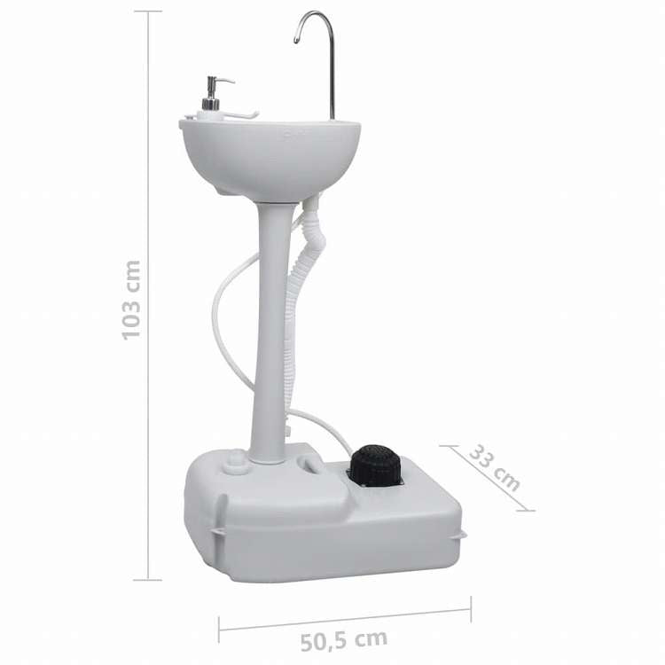 ■軽量でコンパクトなデザインのテント付きのこのポータブルキャンプ手洗いスタンドは、キャンプ、キャンピングカー旅行、建設現場、フードイベント、ポップキオスクなどに最適です。 キャンプ用手洗いスタンドには、テントが付属しており、屋外でもプライバシーを守ることができます。柱にはグラスファイバーを使用しており、テントの構造は高い安定性を持つほか、屋外で洗濯したり服を着たりするときのプライバシーを高めるため、屋根付きのデザインになっています。手洗いスタンドには、3リットルのソープディスペンサー、タオル掛け、17リットルのタンクが装備されており、フットポンプを踏むと水が流れるようになっているほか、簡単に移動できるよう、2つの内蔵型車輪も備えています。 テント付ポータブル手洗いスタンドでキャンプをより便利に楽しくしましょう。 注:テントは、頻繁でない、短期間の使用(パフォーマンスレベル1)を考えて設計されています。防水構造ですが、主として晴天時の使用を想定したものとなっています。