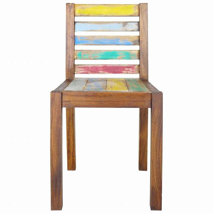 ■ヴィンテージスタイルの木製ダイニングチェアは、アンティークな味わいを醸し出し、ダイニングルームのインテリアに飽きのこないアクセントを加えてくれます。 チーク、マンゴーウッド、パインウッド、ブナなどの再生木材を組み合わせた無垢の再生チェアをハンドメイドで加工したダイニングチェアです。これらの木材は、工場や小屋、船などの古い建物からリサイクルされたもので、環境に優しい家具作りの選択肢として注目されています。ひとつひとつが手作りなので、色も様々で、ブルー、グリーン、レッド、イエローなどの色が見られます。1つ1つが個性的な存在感を持っているチェアです。 重要:色や木目は一点一点異なり、個性が際立つアイテムとなっています。一点ものとして、配送はランダムに行われます。