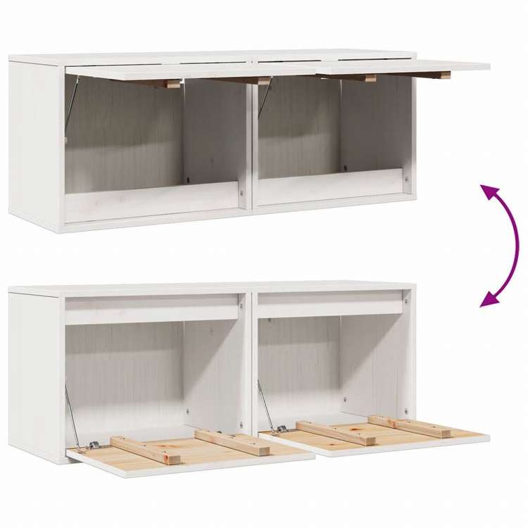 vidaXL ウォールキャビネット 2点 ホワイト 45x30x35 cm パイン無垢材家具 棚 壁面収納棚・壁面ラック(代引不可)