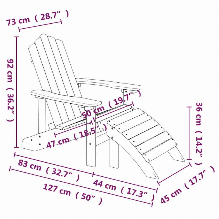 ■庭、パティオ、テラスに実用的でエレガントさを添えるフットスツール付のガーデンアディロンダックチェアです。 プレミアム素材: アウトドアチェアは、耐候性と耐紫外線性に優れたHDPE(高密度ポリエチレン)を使用しています。無垢材は特に雨の日に腐りやすく割れやすい素材ですが、HDPEはその欠点を完全にカバーしています。