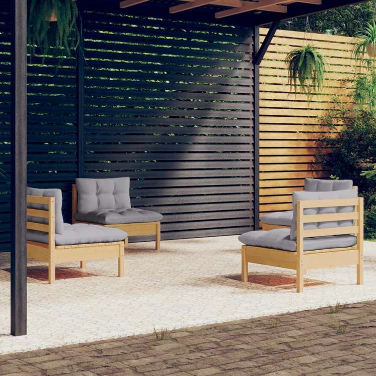 vidaXL ガーデンラウンジセット 4点 グレークッション付き パインウッド家具 アウトドア家具 屋外家具セット(代引不可)