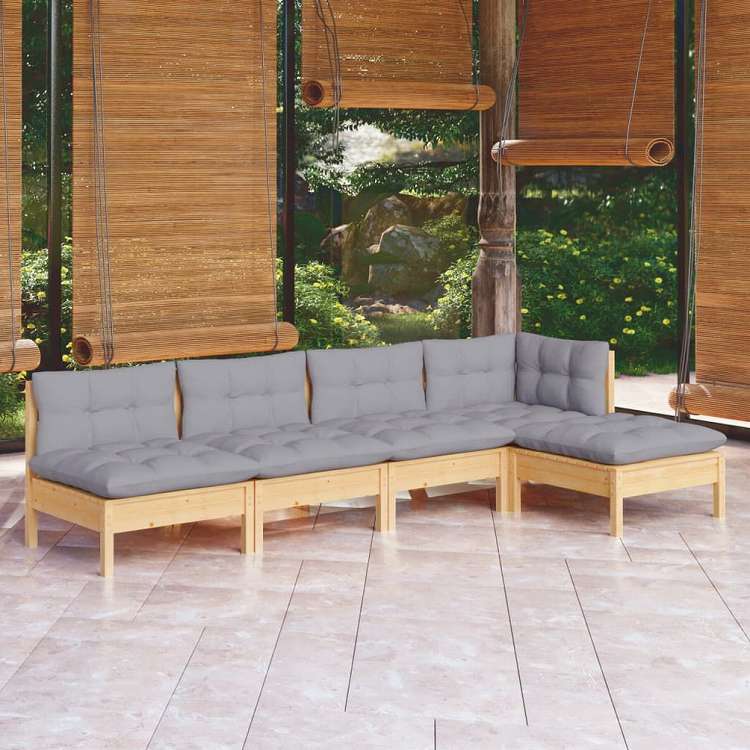 vidaXL ガーデンラウンジセット 5点 グレークッション付き パインウッド家具 アウトドア家具 屋外家具セット(代引不可)