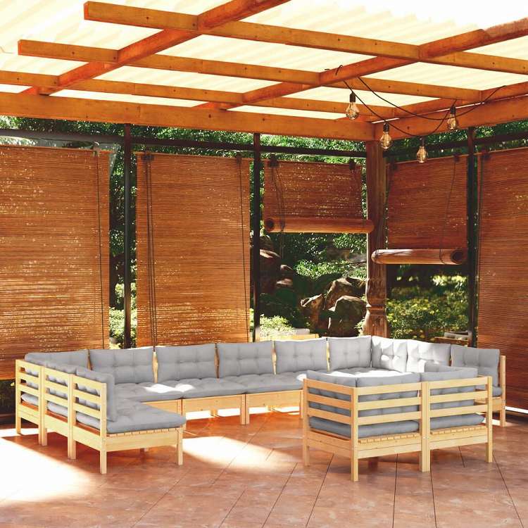 vidaXL ガーデンラウンジセット 12点 グレークッション付き 無垢のパインウッド家具 アウトドア家具 屋外家具セット(代引不可)