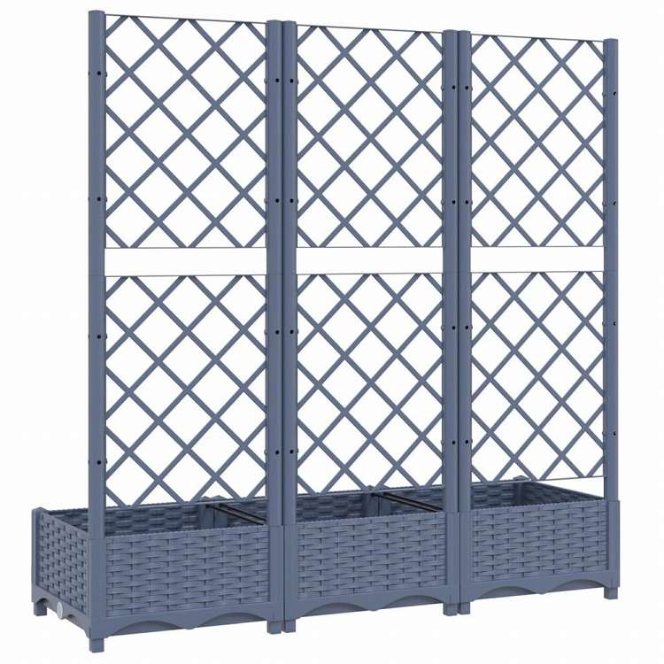 vidaXL ガーデンプランター トレリス付き ブルーグレー 120x40x121.5 cm PPホーム&ガーデン 芝&ガーデン ガーデニング 鉢植え・プランター(代引不可)