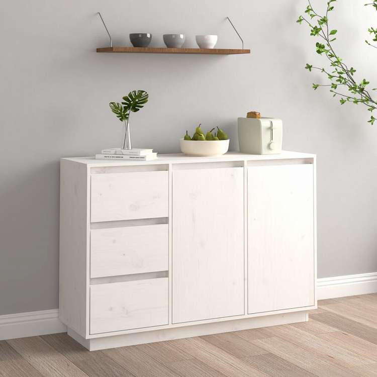 vidaXL サイドボード ホワイト 111x34x75 cm パイン無垢材家具 キャビネット&収納 サイドボード(代引不可)