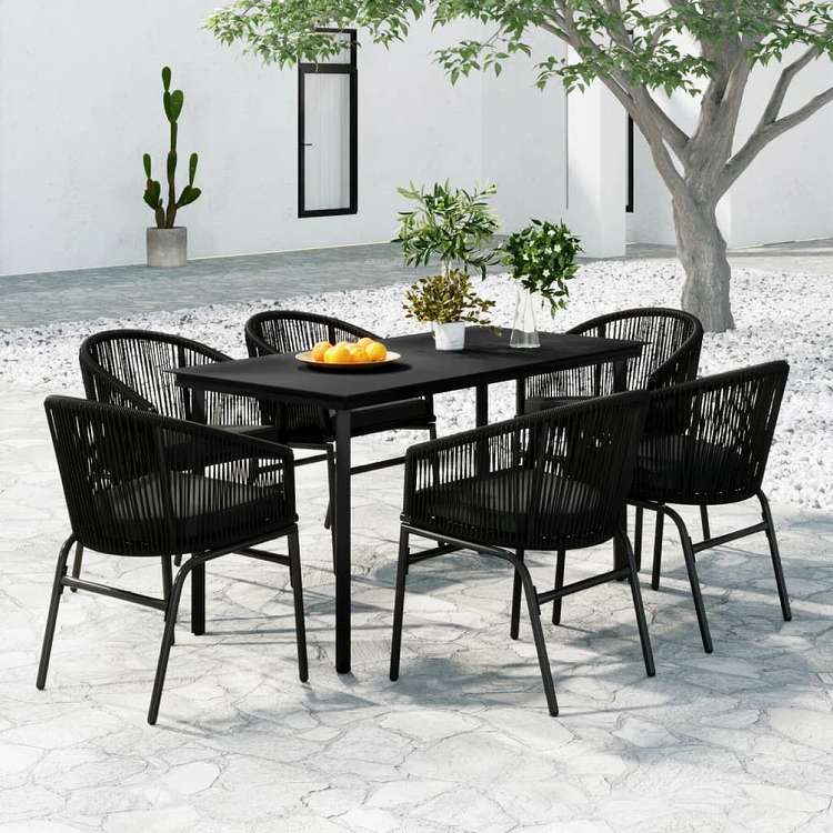 vidaXL ガーデンダイニング7点セット ブラック家具 アウトドア家具 屋外家具セット(代引不可)