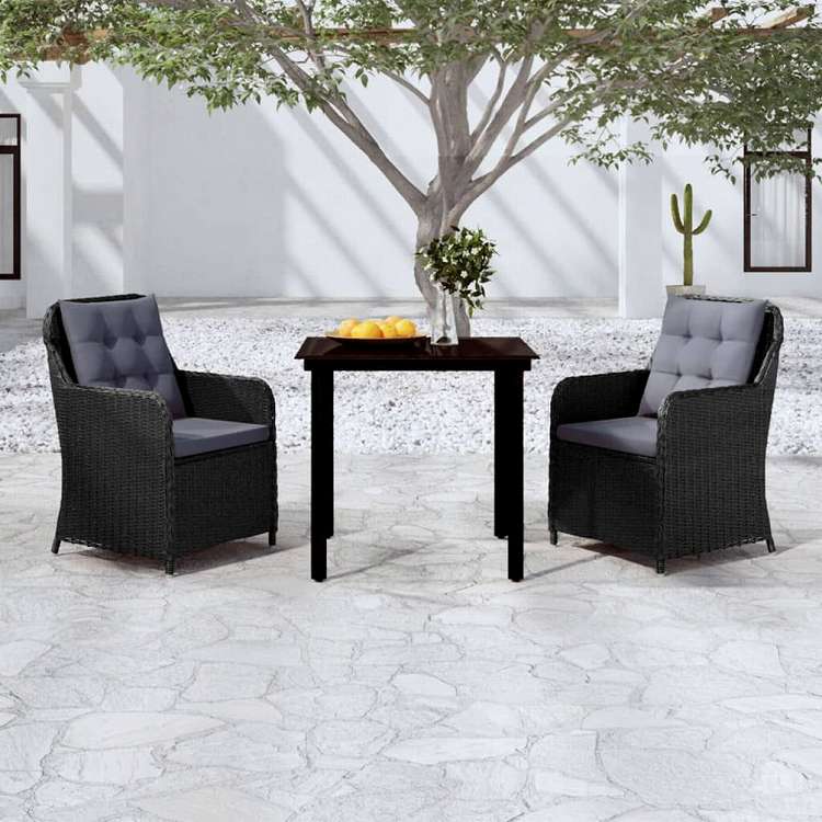 vidaXL ガーデンダイニング3点セット ブラック家具 アウトドア家具 屋外家具セット(代引不可)