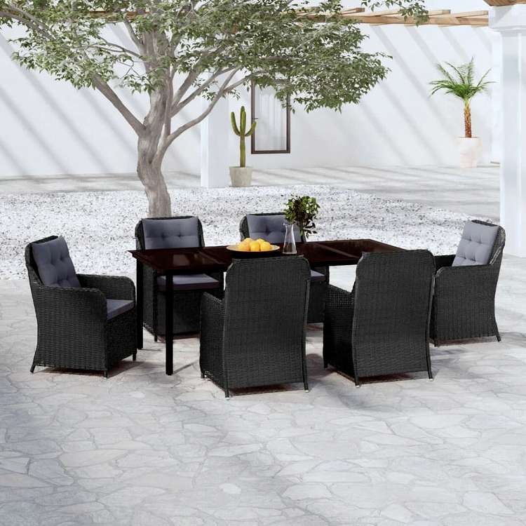 vidaXL ガーデンダイニング7点セット ブラック家具 アウトドア家具 屋外家具セット(代引不可)