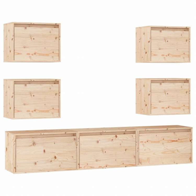 vidaXL テレビキャビネット 7点 無垢のパイン材 (813445+813446+813436x2)家具 AVラック・テレビ台(代引不可)