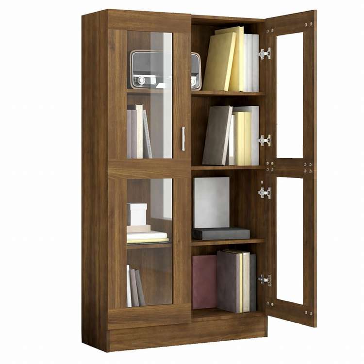 vidaXL ガラスキャビネット ブラウンオーク 82.5x30.5x150 cm エンジニアリングウッド家具 棚 本棚・オープンラック(代引不可)