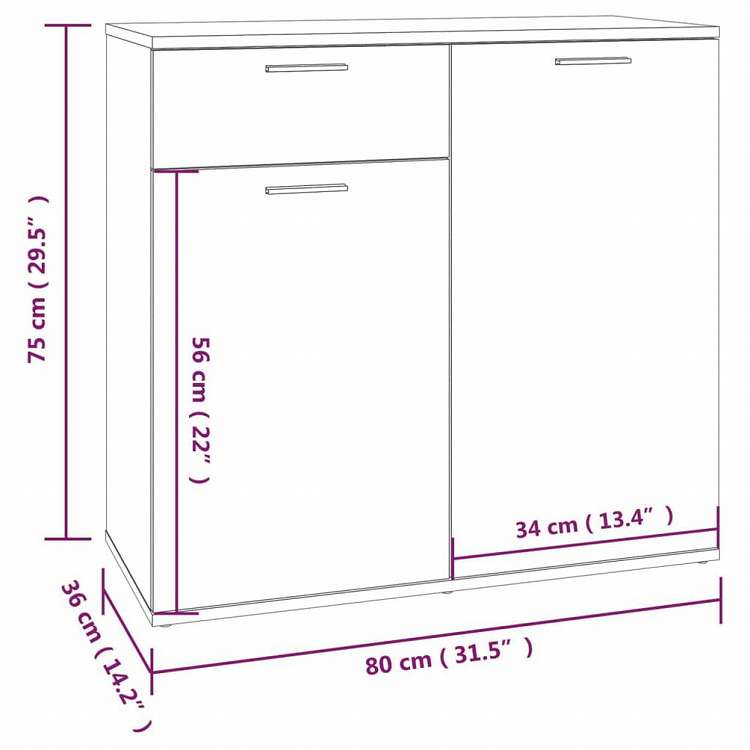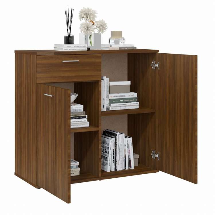 vidaXL サイドボード ブラウン オーク 80x36x75cm エンジニアリングウッド家具 キャビネット&収納 サイドボード(代引不可)
