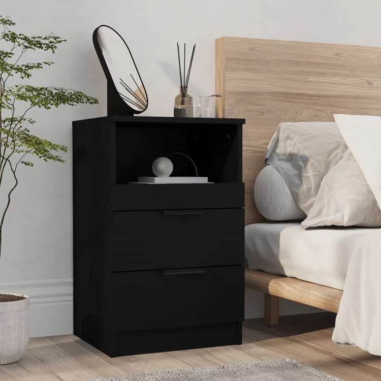 vidaXL ベッドサイドキャビネット ブラック エンジニアリングウッド家具 テーブル ベッドサイドテーブル(代引不可)