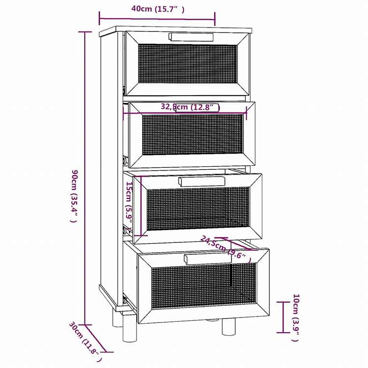 ■引き出しの内部サイズ:32.5 x 24.5 x 15 cm (幅 x 奥行 x 高さ)