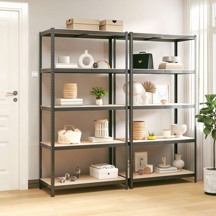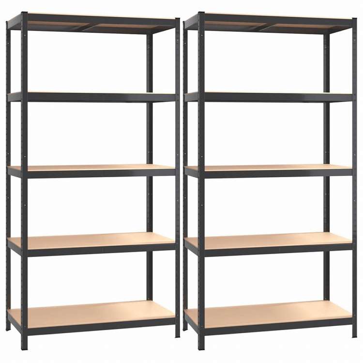 vidaXL 5段シェルフ 2点 アントラシート スチール&エンジニアリングウッドビジネス&工業用 工業用収納 業務用収納棚(代引不可)