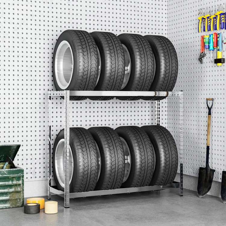 vidaXL 2段型 タイヤラック シルバー 110x40x110 cm 亜鉛メッキ鋼ビジネス&工業用 工業用収納 業務用収納棚(代引不可)