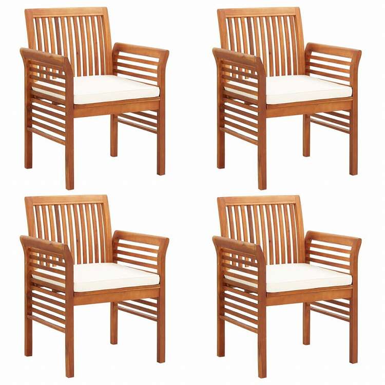 vidaXL ガーデンダイニングチェア クッション付 4点セット アカシア無垢材家具 アウトドア家具 屋外椅子 アウトドアベンチチェア(代引不可)