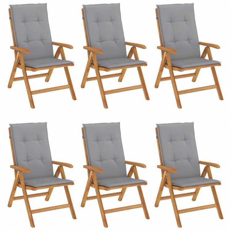 vidaXL リクライニングガーデンチェア クッション付き 6点 チーク無垢材家具 アウトドア家具 屋外椅子 アウトドアベンチチェア(代引不可)