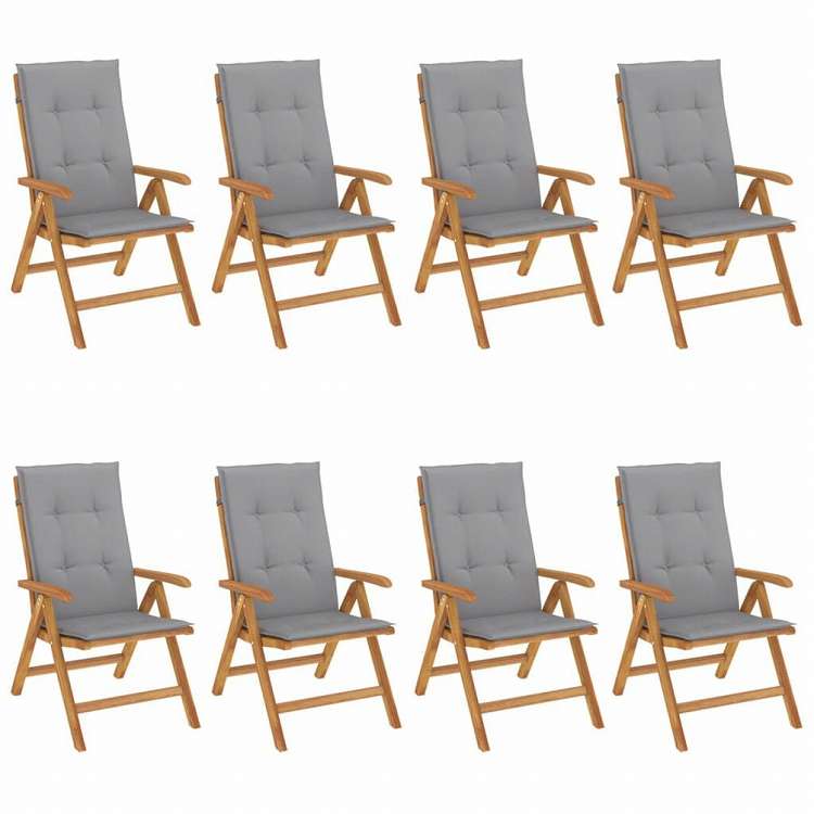 vidaXL リクライニングガーデンチェア クッション付き 8点 チーク無垢材家具 アウトドア家具 屋外椅子 アウトドアベンチチェア(代引不可)