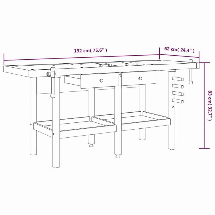 vidaXL 作業台 引き出し&バイス付き 192x62x83 cm アカシア無垢材ハードウェア ハードウェアアクセサリ 工具収納・整理整頓 ワークベンチ(代引不可)