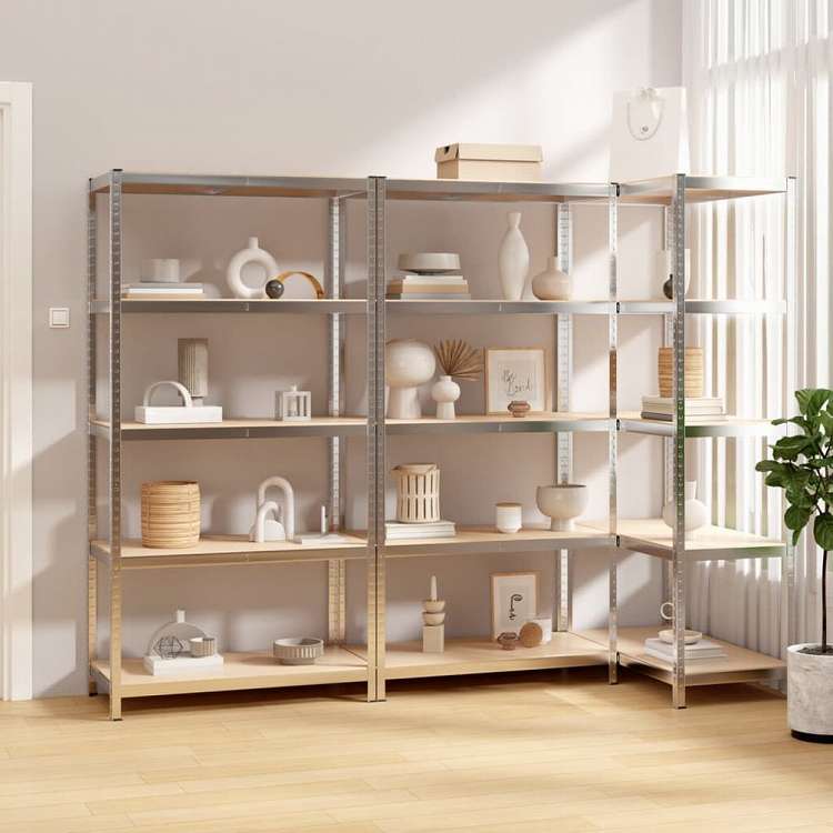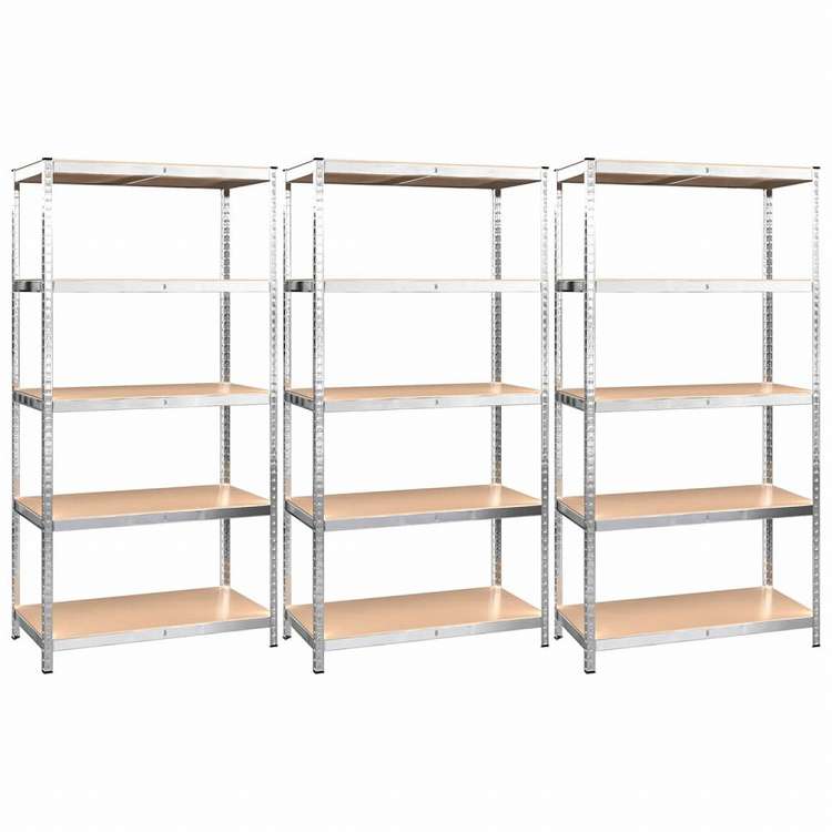 vidaXL 5段シェルフ 3点 シルバー スチール&エンジニアリングウッドビジネス&工業用 工業用収納 業務用収納棚(代引不可)