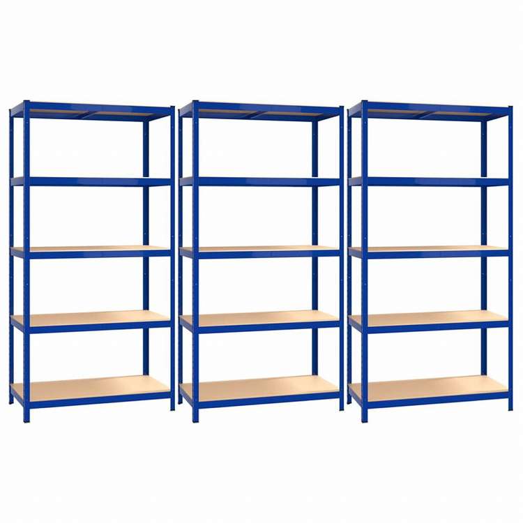 vidaXL 5段シェルフ 3点 ブルー スチール&エンジニアリングウッドビジネス&工業用 工業用収納 業務用収納棚(代引不可)