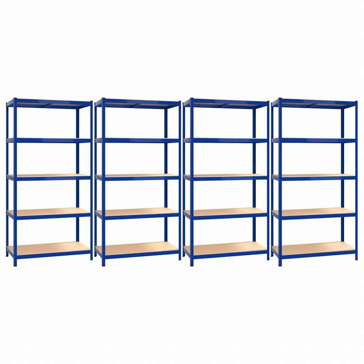 vidaXL 5段シェルフ 4点 ブルー スチール&エンジニアリングウッドビジネス&工業用 工業用収納 業務用収納棚(代引不可)