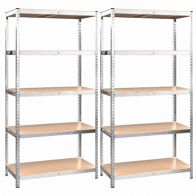 vidaXL 頑丈な5段シェルフ 2点 シルバースチール&エンジニアリングウッドビジネス&工業用 工業用収納 業務用収納棚(代引不可)