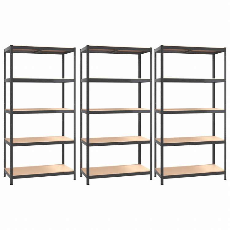vidaXL 5段シェルフ 3点 アントラシート スチール&エンジニアリングウッドビジネス&工業用 工業用収納 業務用収納棚(代引不可)
