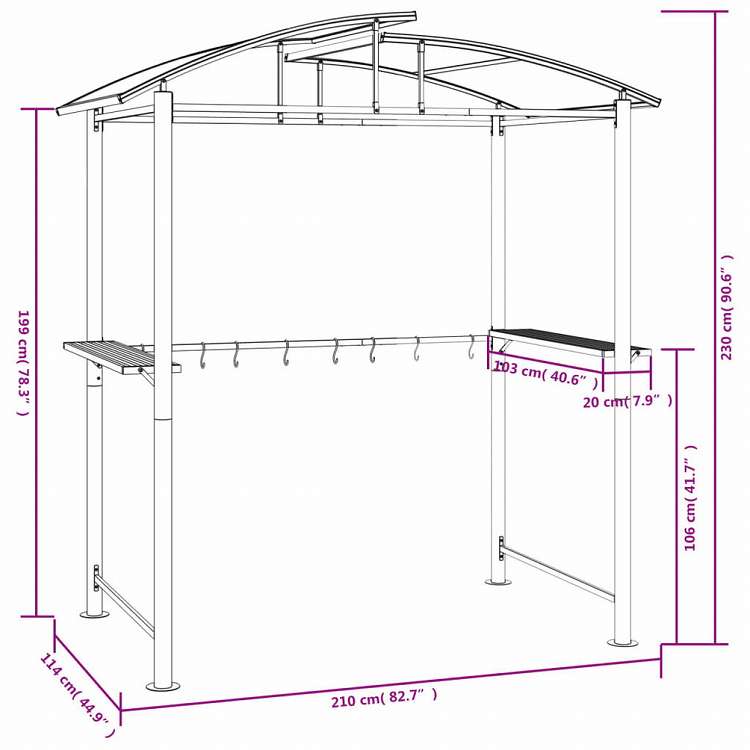 vidaXL BBQ ガゼボ サイドシェルフ付き アントラシート 210x114x230 cm スチール製ホーム&ガーデン 芝&ガーデン アウトドアリビング アウトドアストラクチャー キャノピー・ガゼボ(代引不可)