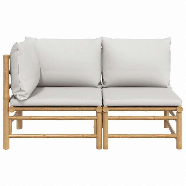 vidaXL ガーデンラウンジ2点セット ライトグレークッション付き 竹製家具 アウトドア家具 屋外椅子 屋外用組み合わせソファセット(代引不可)