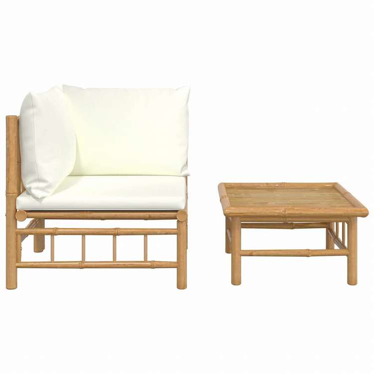 vidaXL ガーデンラウンジ2点セット クリームホワイトクッション付き 竹製家具 アウトドア家具 屋外椅子 屋外用組み合わせソファセット(代引不可)
