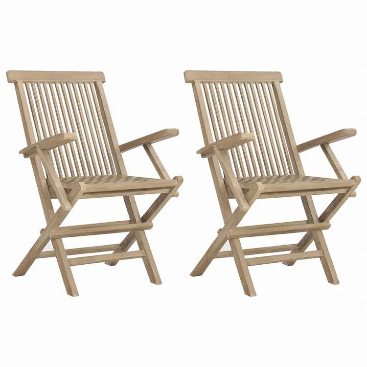 vidaXL 折りたたみガーデンチェア 2点 グレー 56x61x89 cm チーク無垢材家具 アウトドア家具 屋外椅子 アウトドアベンチチェア(代引不可)