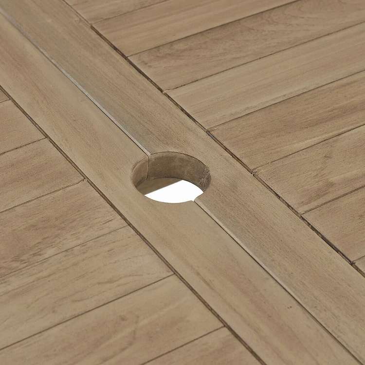 ■パラソル用穴:テーブルトップにパラソルを立てるための穴が開いているため、簡単にパラソルを立てて日陰を作ることができます。