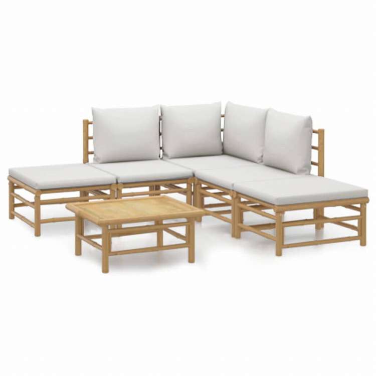 vidaXL ガーデンラウンジ6点セット クッション付き 竹製 ライトグレー家具 アウトドア家具 屋外家具セット(代引不可)