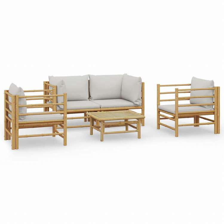vidaXL ガーデンラウンジ5点セット ライトグレークッション付き 竹製家具 アウトドア家具 屋外家具セット(代引不可)