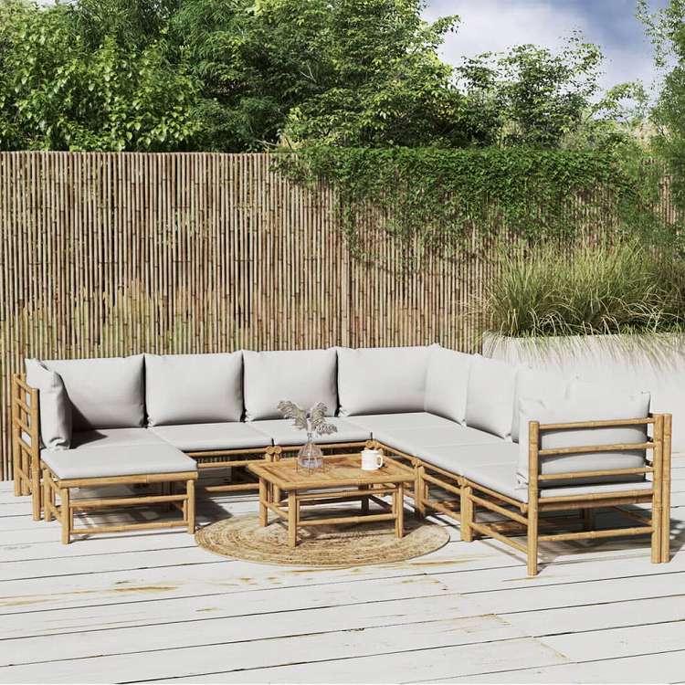vidaXL ガーデンラウンジ9点セット ライトグレークッション付き 竹製家具 アウトドア家具 屋外家具セット(代引不可)