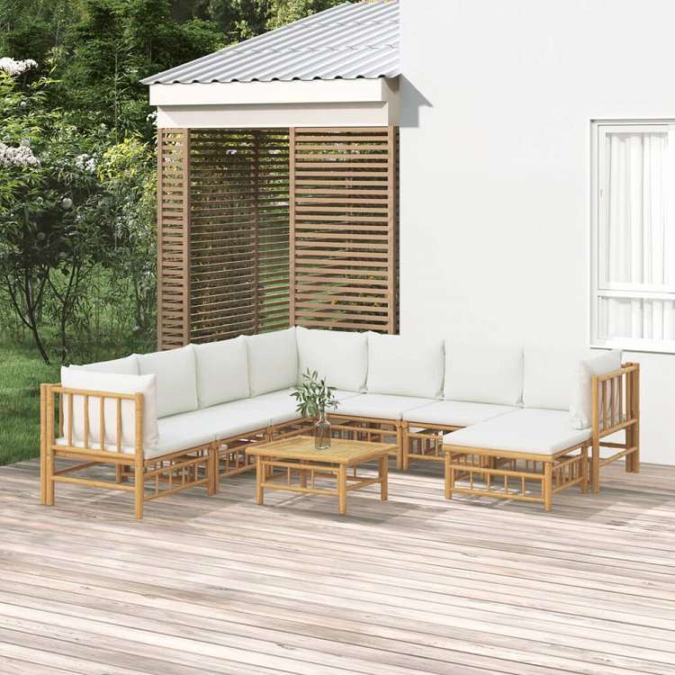 vidaXL ガーデンラウンジ9点セット クリームホワイトクッション付き 竹製家具 アウトドア家具 屋外家具セット(代引不可)