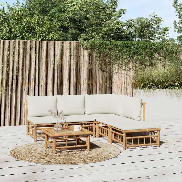 vidaXL ガーデンラウンジ6点セット クリームホワイトクッション付き 竹製家具 アウトドア家具 屋外家具セット(代引不可)