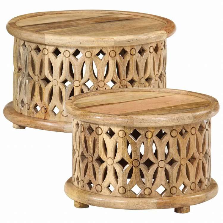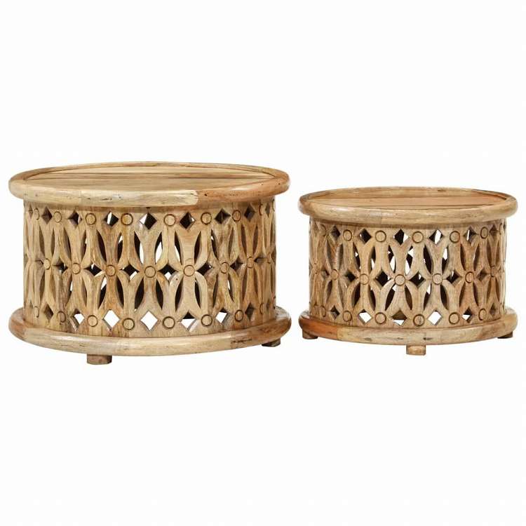 vidaXL コーヒーテーブル2点セット マンゴー無垢材家具 テーブル アクセントテーブル コーヒーテーブル(代引不可)