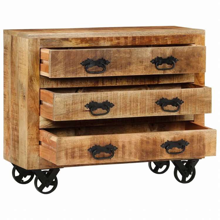 vidaXL サイドボード 引き出し3つ付き 80x30x65 cm マンゴー無垢材(粗目)家具 キャビネット&収納 サイドボード(代引不可)