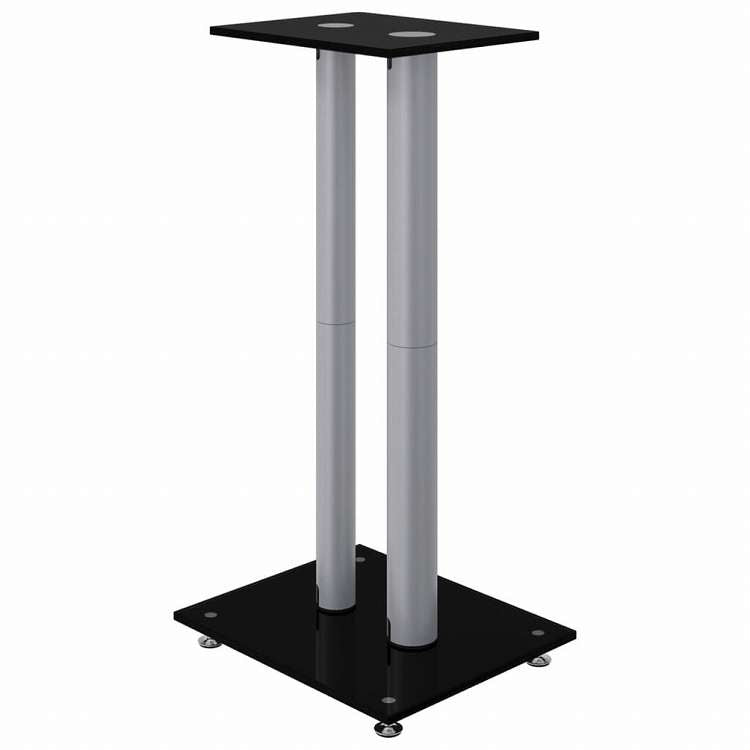 vidaXL スピーカースタンド 2点 ブラック&シルバー 強化ガラス 柱2本デザイン電子機器 オーディオ オーディオアクセサリー スピーカーアクセサリ スピーカースタンド・マウント(代引不可)